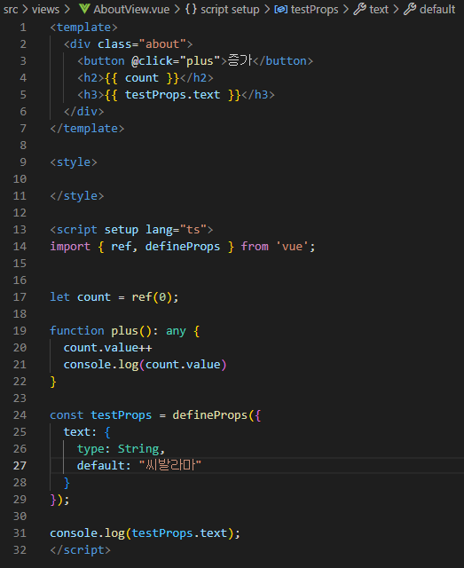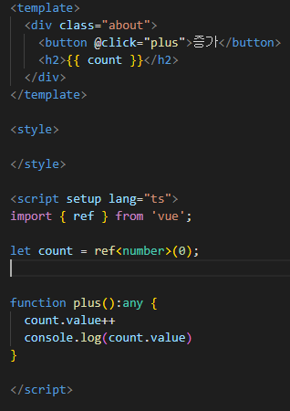 ref의 타입을 명시하지 않아도 되지만 기왕 타입스크립트 쓰는김에 ref<number>(0);으로 명시해보았다.